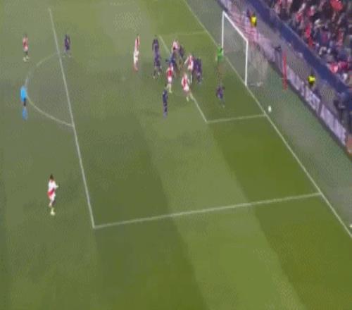 第34分钟,埃里克-加西亚直传,莱万脚后跟做球,德容跟上直塞,费尔明插上射门,斯塔涅克扑救失误,皮球钻入网窝,巴萨终于扳平,1-1!