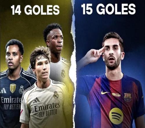 本赛季到目前为止,目前身价只有5000万欧元不到的费兰托雷斯各项赛事中为巴萨打入15个进球,而反观皇马三位前锋维尼修斯、罗德里戈和贡萨洛加西亚的进球总和只有14球。这位25岁的西班牙前锋在各项赛事中为巴萨出战26场,其中19次首发,累计登场1569分钟,攻入15球并贡献1次助攻。相比之下,身价1.5亿欧元的25岁巴西球星维修斯,本赛季代表皇马出战28场24次首发,2112分钟贡献6球;身价6000万欧元巴西前锋罗德里戈,本赛季代表皇马出战24场9次首发,1013分钟仅打入3球; 21岁的皇马自家青训小将贡萨洛加西亚,本赛季代表皇马出战21场13次首发,674分钟收获5球。